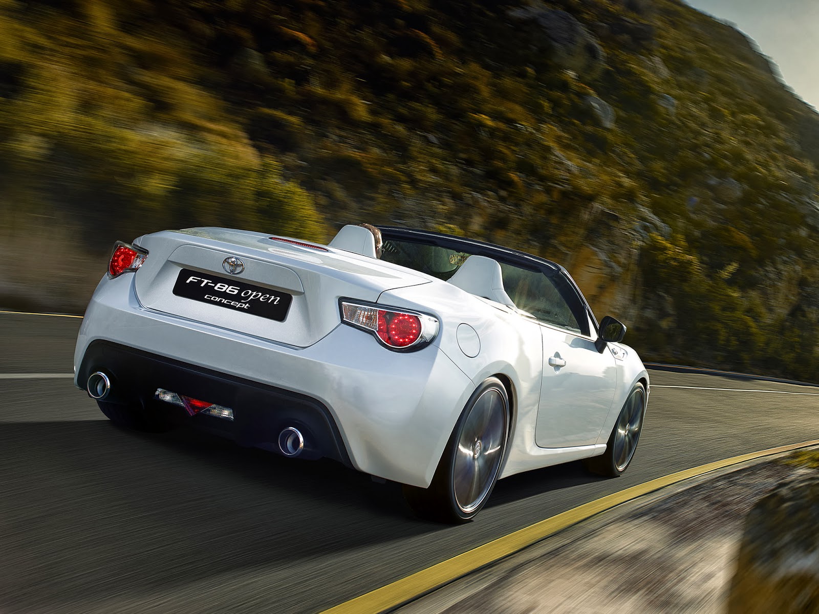 Following the global success of the exhilarating GT86 (Scion FR-S/Toyota GT86/Subaru BRZ) coupe, the Toyota Open concept has been created to gauge customer reaction to the possible launch of a convertible version of Toyota's remarkable, front 'boxer' engined, rear-wheel drive, compact 2+2 sports car. The FT-86 Open concept (FT-86 stands for "Future Toyota 86 Concept") featured a multi-layered fabric roof construction with a glass rear screen. It retained the GT86's 2+2 seating format, the roof being stowed behind fixed rear seats with minimal impact on luggage capacity.