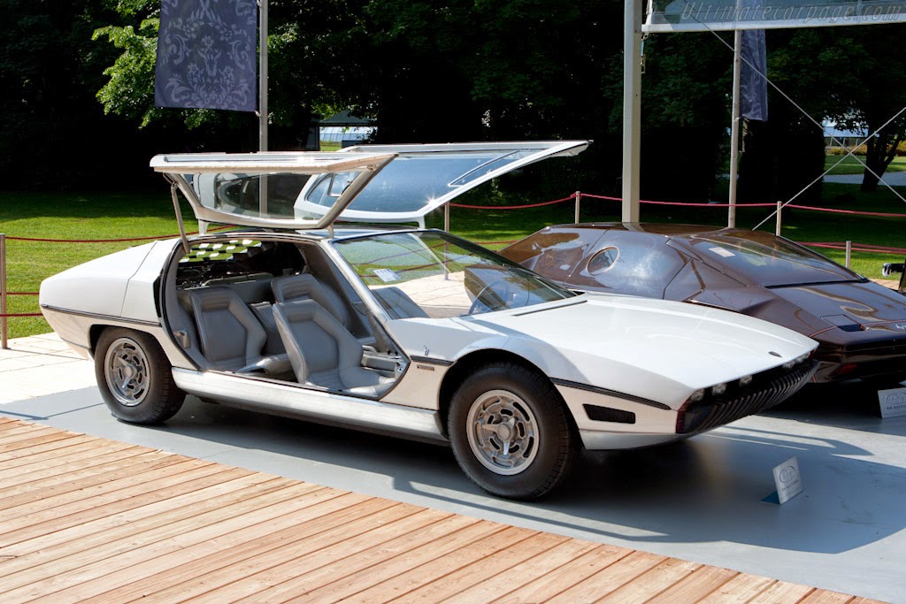 Presented at Geneva in 1967, the Marzal Concept offered Bertone's new chief designer Marcello Gandini the first opportunity to fully step out of the shadow of Giorgietto Giugiaro, who still had had a hand in Gandini's earlier designs including the Miura. The striking Marzal Concept was to some extent a four-seater version of the mid-engined Miura but with dramatic new lines and a bespoke engine. What the Marzal shared with the Miura was the box-section steel chassis that had been first shown to the public at the Turin show in 1965. The only real change was a slight increase of the wheelbase.