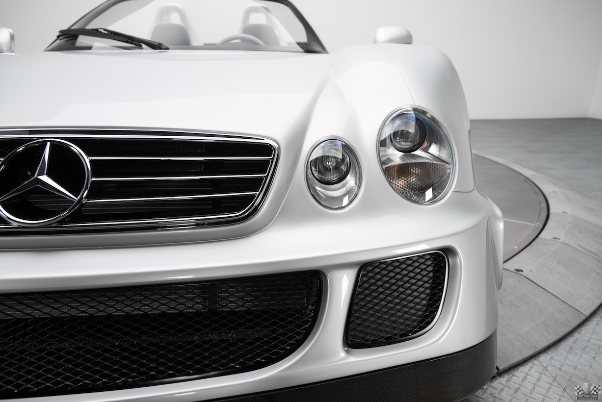 Headrests were used not only for structural integrity, but also rollover protection. Inside the interior the two-tone leather interior comes with amenities like air conditioning, power steering, and some storage; the cockpit inspired interior still points to its motorsports background. Lift open the driver’s side door and you’ll reveal a carbon fiber storage component to the left of the driver’s seat that has been attached with a “AMG CLK GTR Roadster Limited Edition" plaque. In front of the two-tone leather driver’s seat is the leather clad steering wheel, which is fully equipped with an integrated airbag. In front of the steering wheel is a bespoke instrument cluster. Making this supercar even more fun to drive is the paddle shifters on either side of the steering wheel. Each seat has been equipped with a 4-point harness for added safety. Between the two seats is another plaque designating the rarity of this vehicle. (wikipedia & rkmotorscharlotte.com)