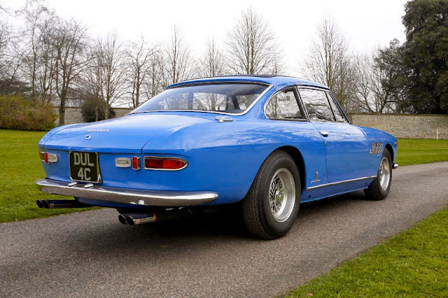 Designed by Tom Tjaarda at Pininfarina, the 300GT 2+2 adopts a four-headlamp frontal treatment that reflected the tastes of Ferrari's most important export market, the USA. The 330GT's tubular chassis was 50mm longer in the wheelbase than before. Its Colombo-type, 60-degree, V12 engine had first appeared in the 330 America (effectively a big-bore 250GTE 2+2) in 1963. Displacing 3,967cc, the single-overhead-camshaft, all-alloy unit was good for 300-plus hp, an output sufficient to propel the 330GT to a maximum velocity of 152mph (245km/h) making it, when introduced, the fastest road-going Ferrari. Built alongside the ultra-exclusive Superamericas, the 330GT was Ferrari's ultimate grand tourer for the sophisticated client during the era. A favourite of Enzo Ferrari, it was the first of his cars to sell in excess of 1,000 units. (bonhams.com)