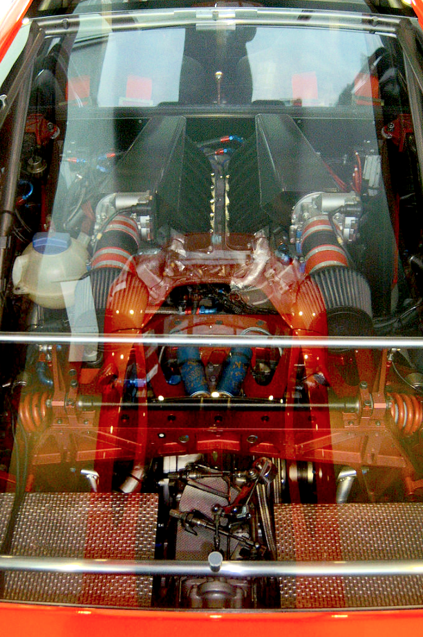 The sports car, finished in orange pearlescent, has two wing doors that open to the front and roof centre part made of special glass which extends from the windscreen through to the end of the engine compartment. The first glance of the W12 wîth its double V construction can be made through the transparent bonnet.